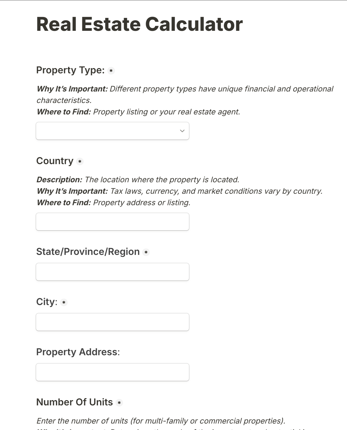 Simply enter your property details, and the calculator transforms complex data into an actionable, easy-to-read report. It’s efficient, accurate, and designed to help you make smarter investment decisions—without the frustration of manual spreadsheets.