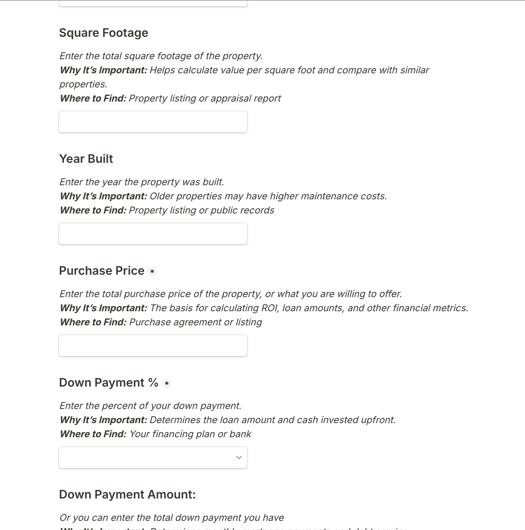 Designed for investors who value precision, this tool delivers the key metrics you need to evaluate any property with confidence.